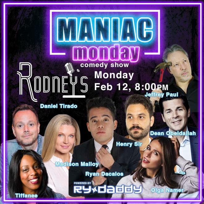 It’s never too early in the week to laugh! Join us for Maniac Monfay's at Rodney's Comedy Club. Maniac Mondays presents a mix of citywide stars, club favorites, and fresh faces so you can kick off your evening with a lot of laughs!